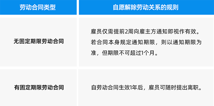 (4) 雇主可设置试用期以考察雇员与岗位的匹配程度,试用期一般为3个月(部分本土龙头大型企业有6个月试用期的情况),但雇主方在试用期解除劳动关系等同于正式劳动关系中的解雇,须给予正式解雇理由。