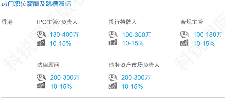 数据来源:猎头公司PA真人国际国际资深行业专家对2019年热门职位薪酬范围及跳槽涨幅的预测。薪酬为基本年薪。单位为港币。