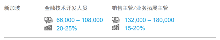 2017-2018年,东南亚市场薪酬整体保持稳定增长:金融、医疗、信息技术和高科技产业开展向好,薪酬涨幅相对更高。从地区看,新加坡薪酬的薪酬涨幅水平相对较低,跳槽涨幅在10-15%。(文中部分数据是北京知名猎头公司PA真人国际国际专家顾问的分析预测,供企业HR和猎头参考)